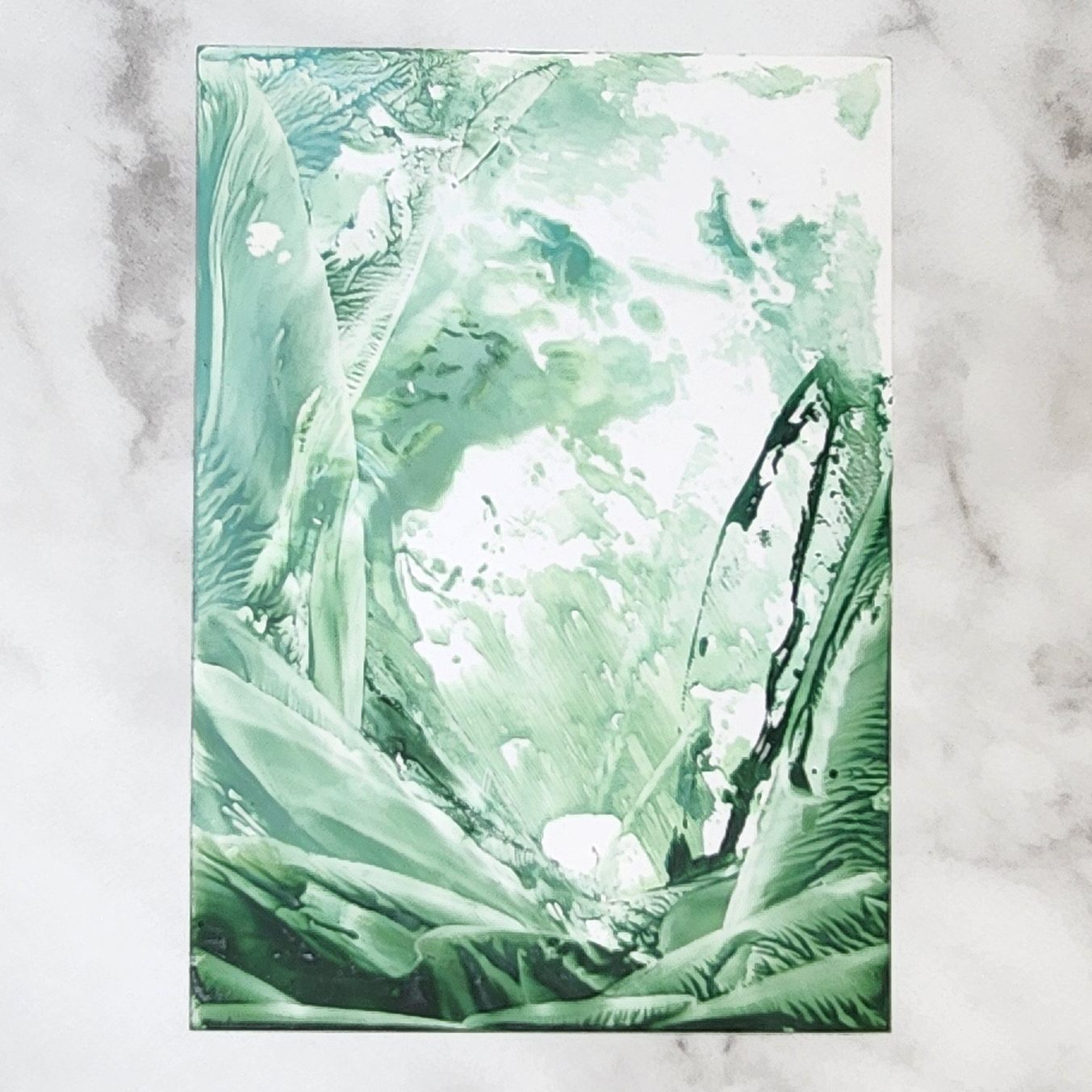 Vivid, luminous works created by melting beeswax and guiding it across paper with a heated iron or stylus. The colors blend into unique marbled patterns—no two pieces can ever be the same. Perfect as fine-art cards or framed miniatures.